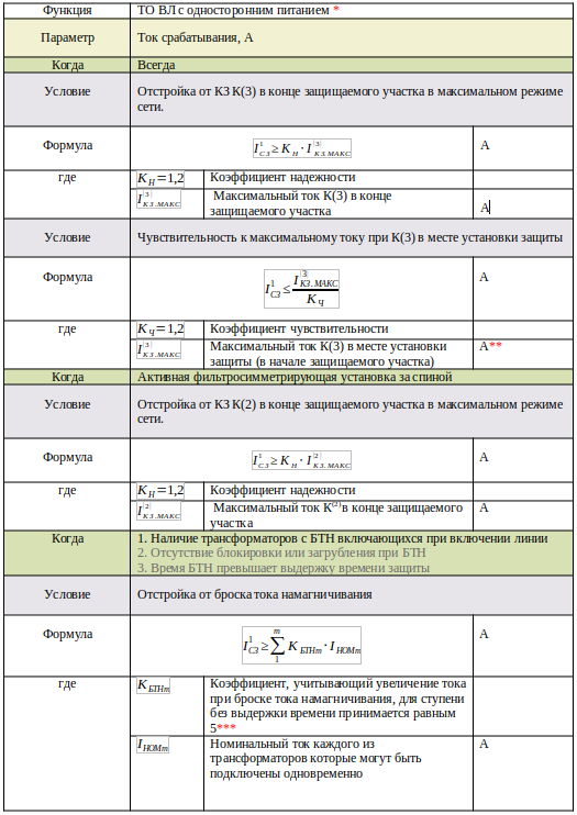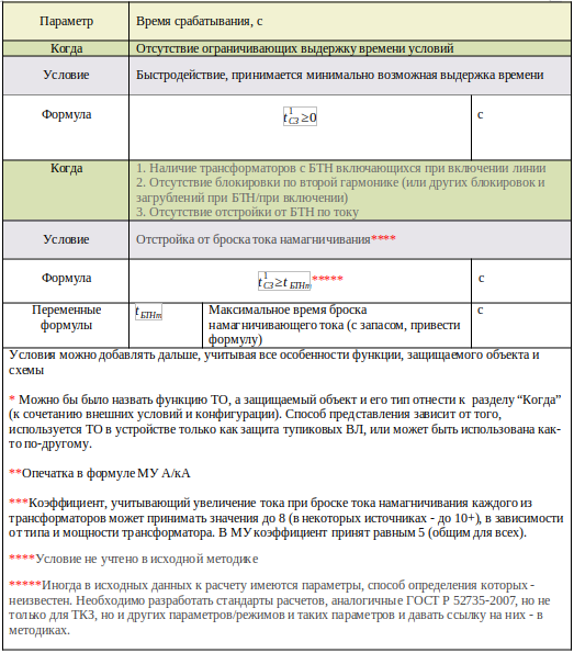 В рекомендациях формула иногда задаётся в виде текстового описания. Например, в виде «Уставка задаётся по условию отстройки от…, с учётом…». Расшифровка и результат подобного совета (в виде значения уставки) зависит от квалификации и опыта специалиста по расчёту уставок.